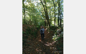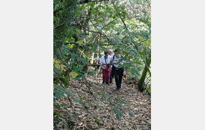 Après l'escalade et la traditionnelle photo de famille, nous cheminons en sous bois le long de petits murets.