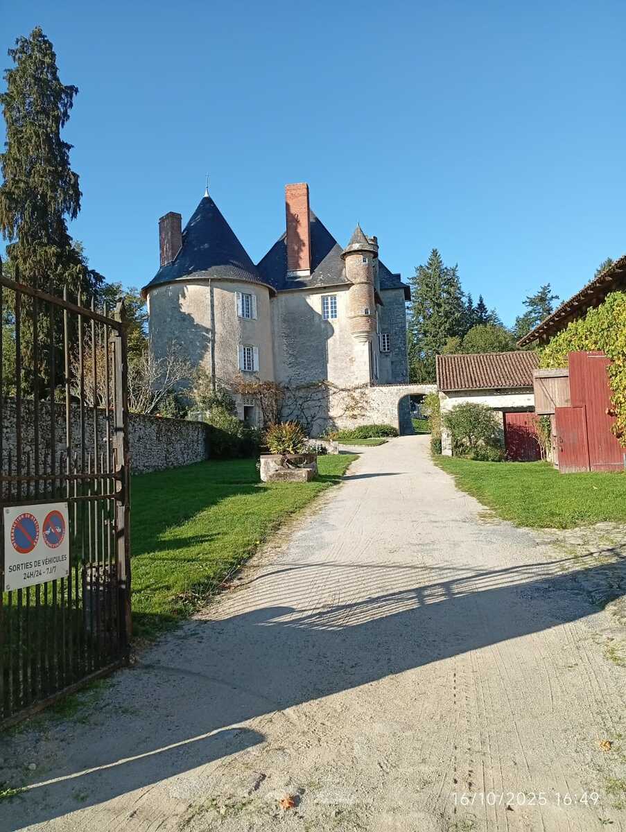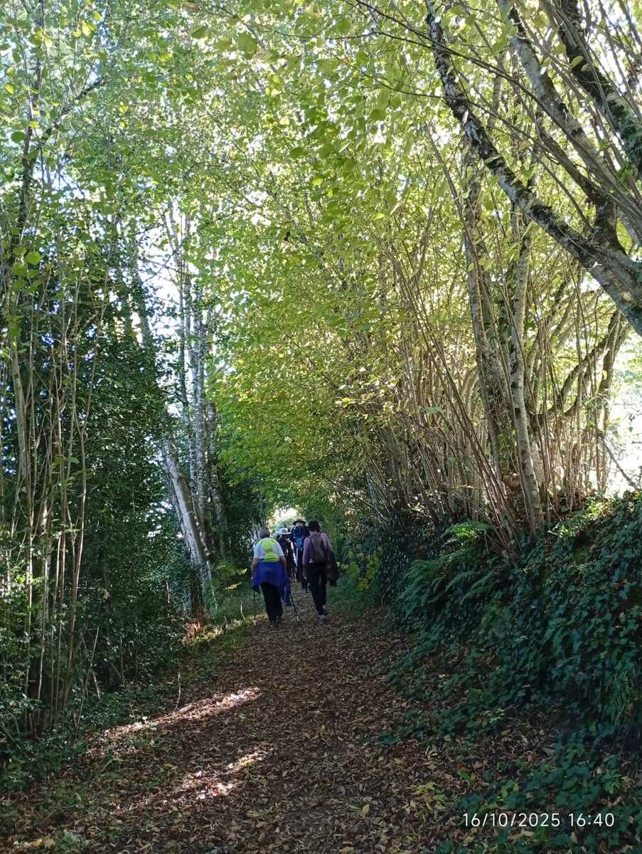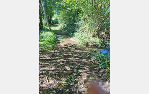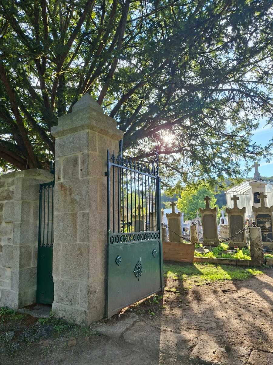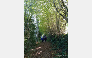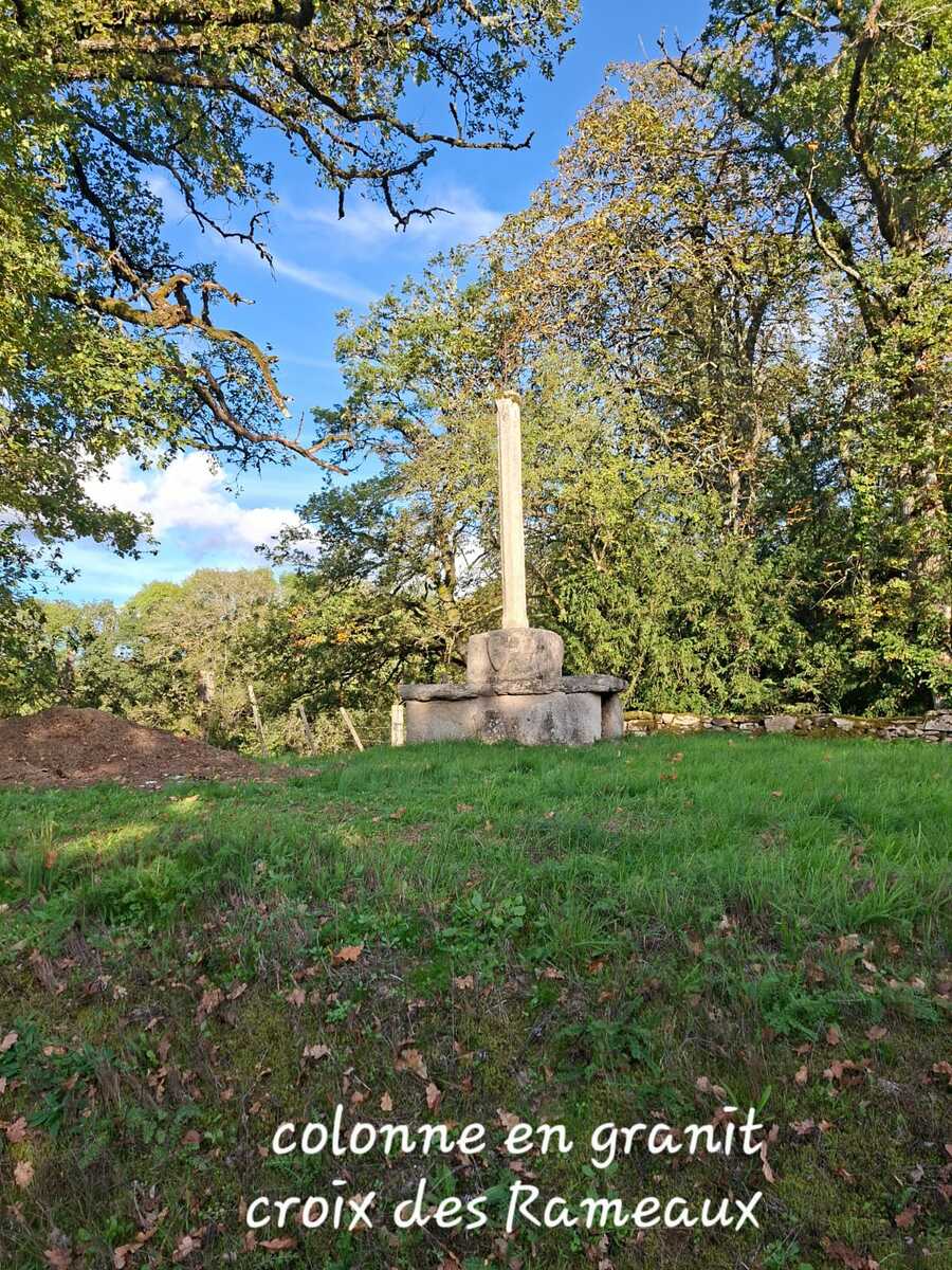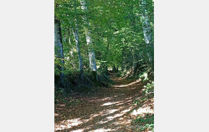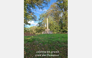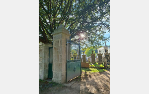 Nous suivons le verger communal et franchissons le ruisseau pour aller chercher le chemin qui nous emmène au village de Lathiere, assez typique avec ses cours pavées comme la plupart des chemins qui nous mènent dans différents villages ( une voie romaine, le sentier des murets, vestige gallo romain, ancien prieuré, un ancien puy, une fontaine circulaire en granit, de beaux points de vue et les arbres qui prennent leur couleur d'automne. Nous arrivons au cimetière où sur la gauche se dresse une colonne en granit surmontée d'une croix "la Croix des rameaux". Nous rejoignons le centre bourg avec son château et son église du XIII ème siècle.