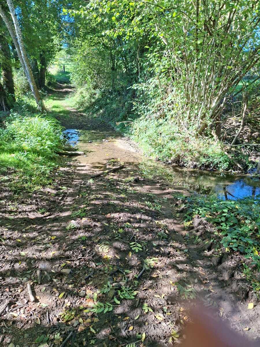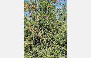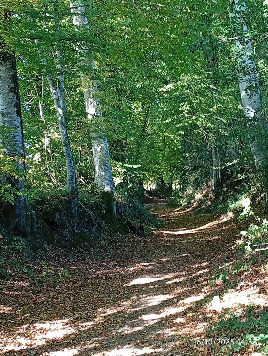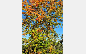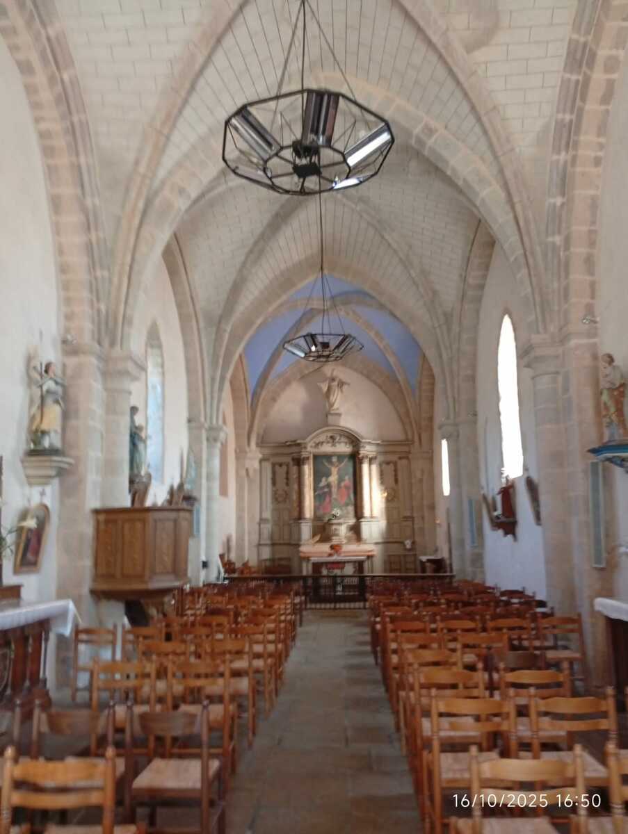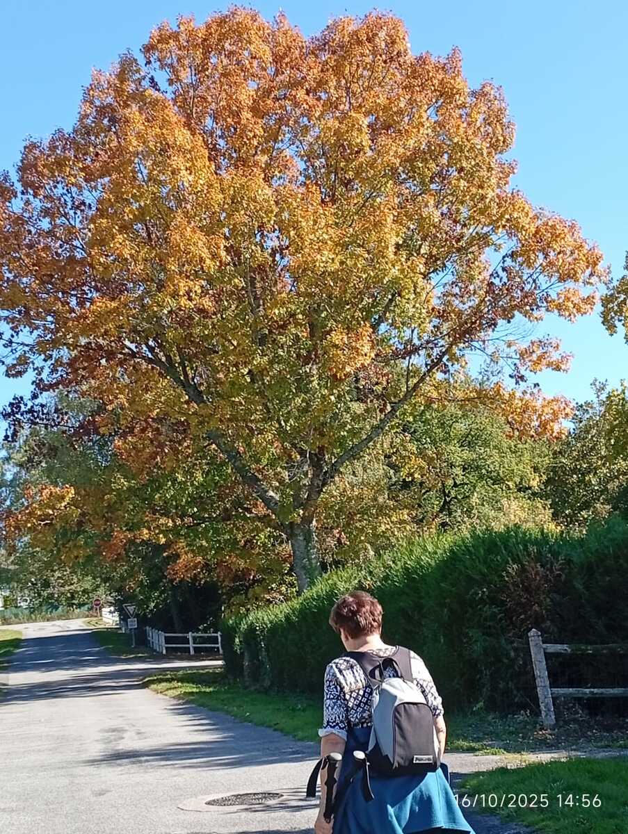 Nous suivons le verger communal et franchissons le ruisseau pour aller chercher le chemin qui nous emmène au village de Lathiere, assez typique avec ses cours pavées comme la plupart des chemins qui nous mènent dans différents villages ( une voie romaine, le sentier des murets, vestige gallo romain, ancien prieuré, un ancien puy, une fontaine circulaire en granit, de beaux points de vue et les arbres qui prennent leur couleur d'automne. Nous arrivons au cimetière où sur la gauche se dresse une colonne en granit surmontée d'une croix "la Croix des rameaux". Nous rejoignons le centre bourg avec son château et son église du XIII ème siècle.