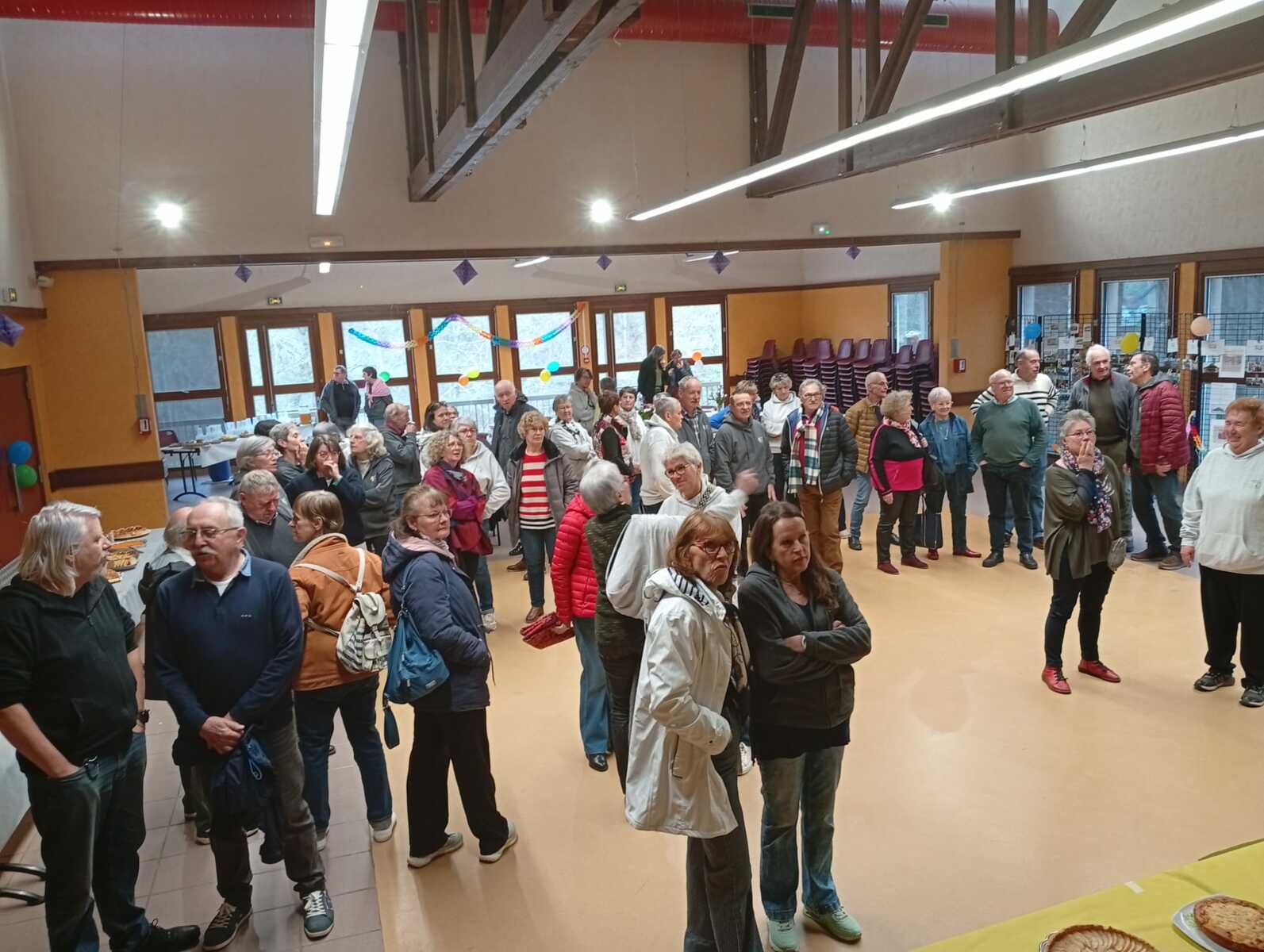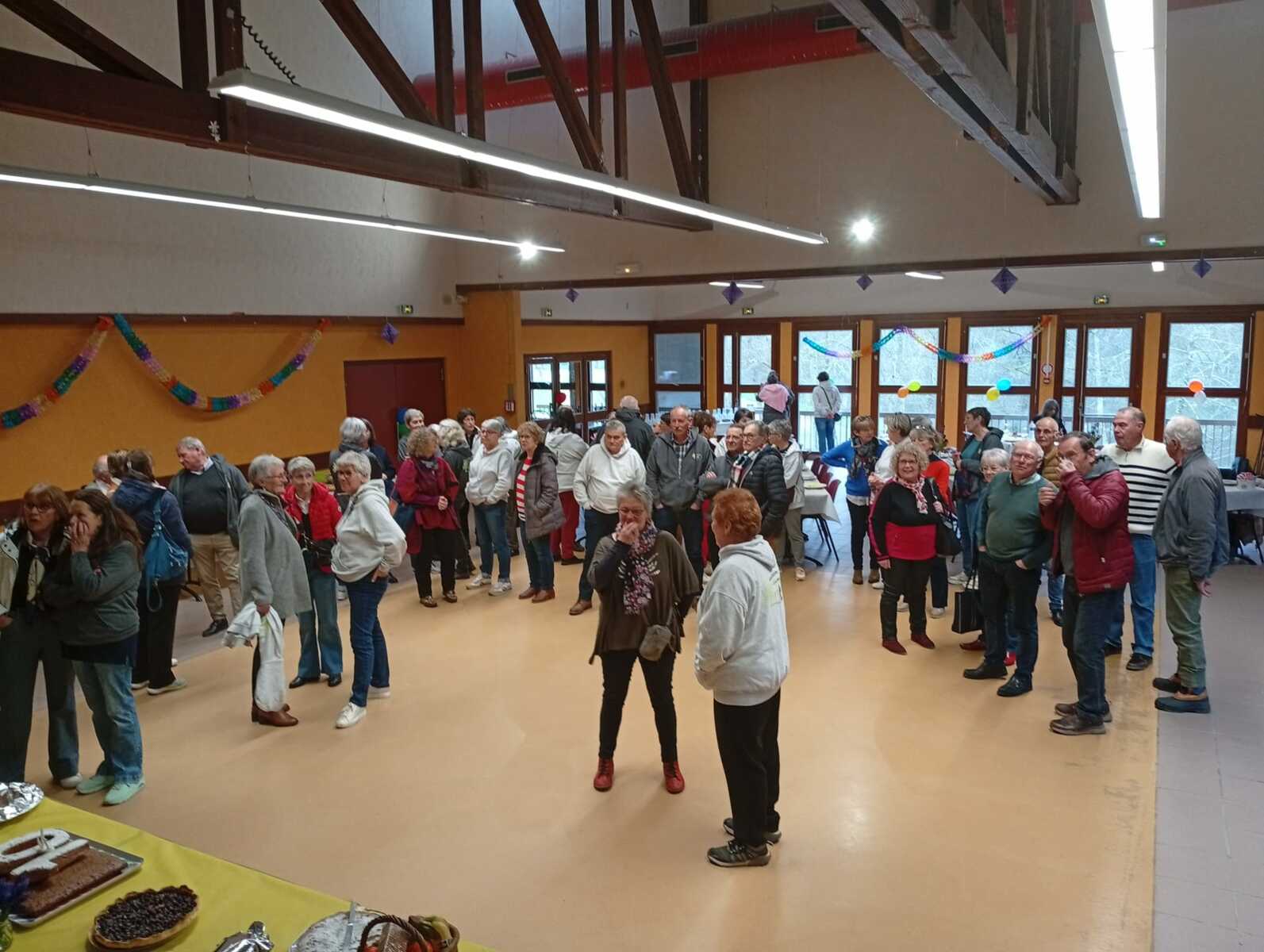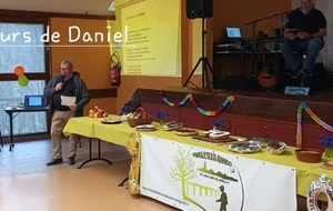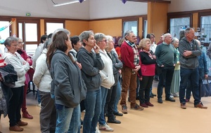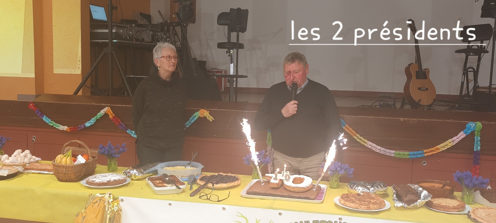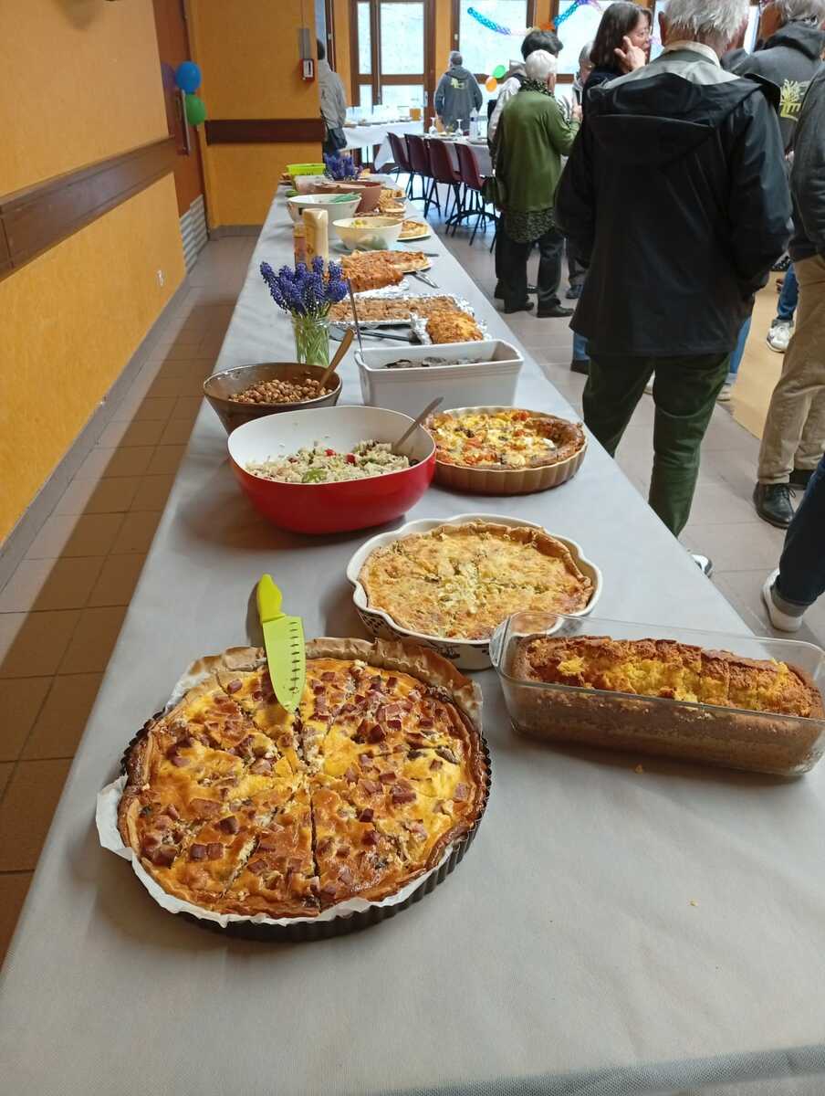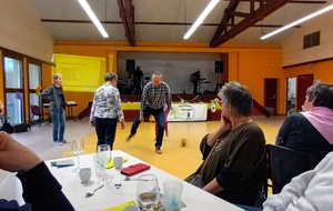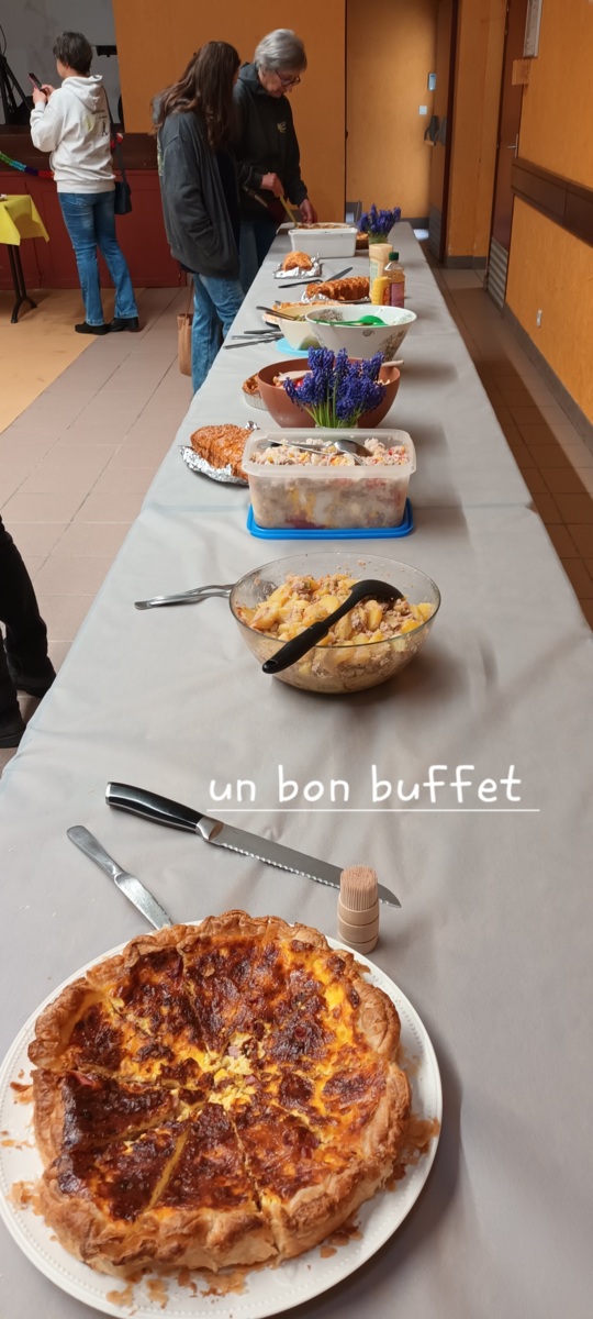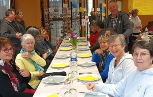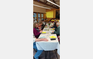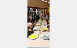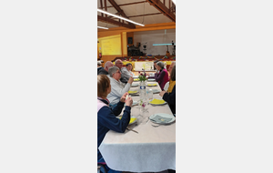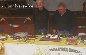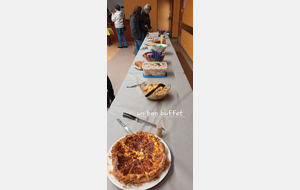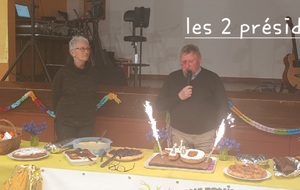Après un discours de notre président nous avons attaqué le buffet (chacun avait apporté un plat) qui était très copieux et qui s'est terminé par le gâteau et ses bougies soufflées par nos deux présidents.