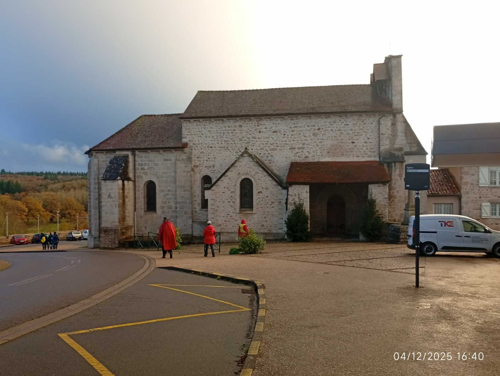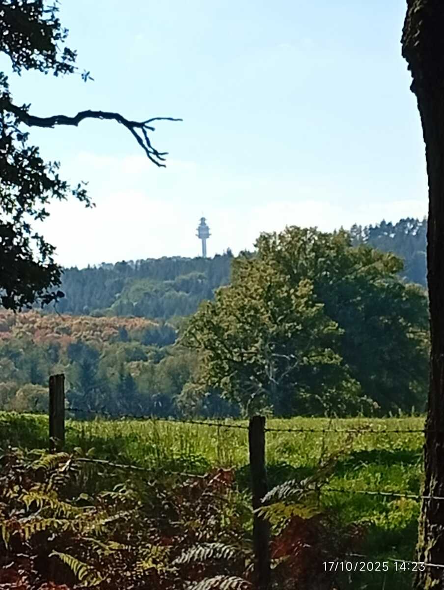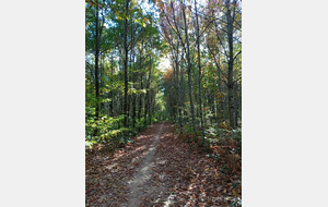Nous quittons Feytiat par l'allée Jean Monnet face au chevet de l'église, sur les hauteurs d'Ardennes (350m), une belle vue sur Limoges, Feytiat, même la tour de Boisseuil et la tour des Cars. Une allée de chênes nous amène au village de Puy Marrot, plutôt que de suivre la route vers les Biards nous partons dans la forêt, les sentiers sont un peu boueux, nous retrouvons notre fléchage, nous traversons les bois de la grange, le ruisseau, une allée de chênes nous conduit au château d'eau, plutôt que de suivre la route nous prenons un petit sentier. Dans Feytiat nous traversons l'espace vert du lotissement de la croix des rameaux où a été tracé un parcours sportif. Puis nous remontons jusqu'à l'église.