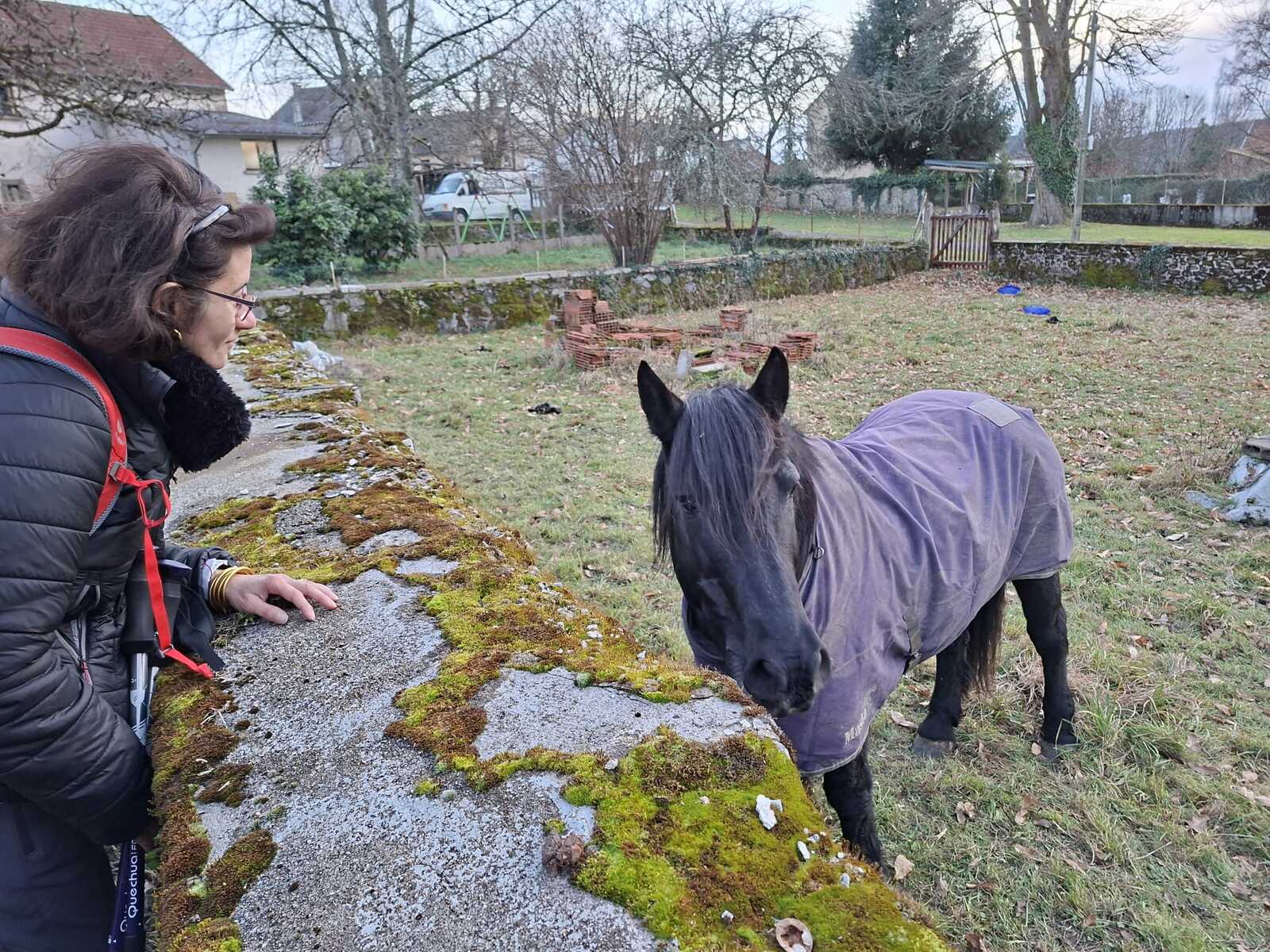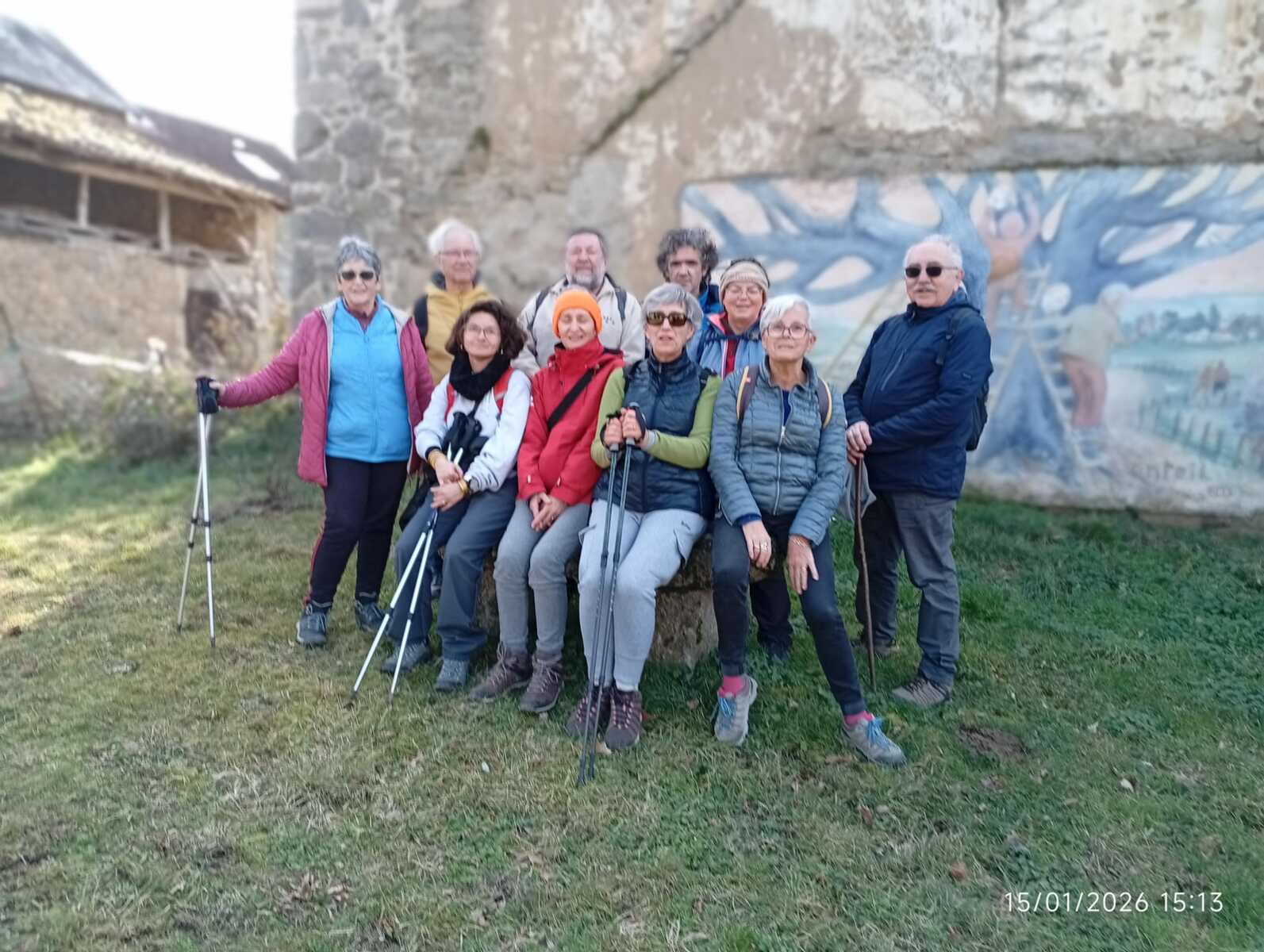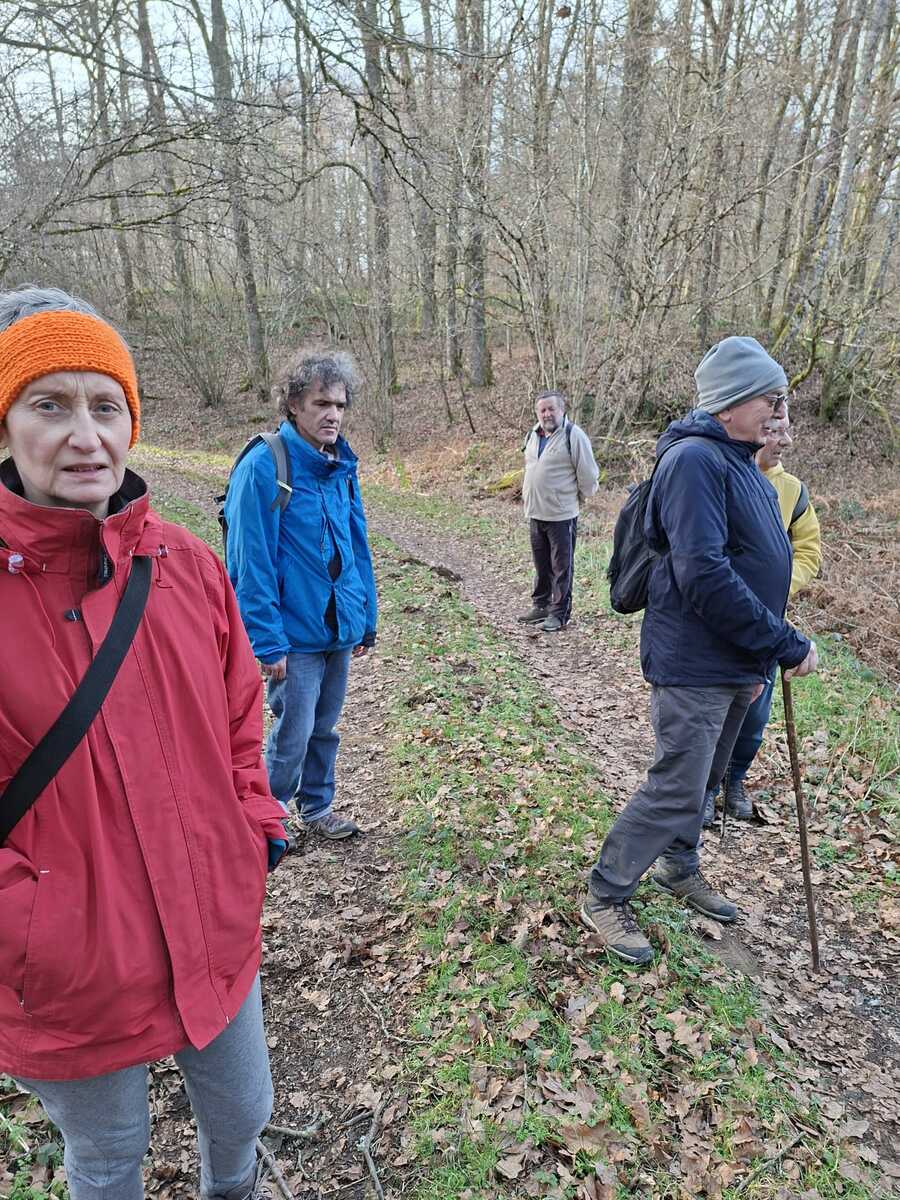 Nous étions 11 au départ de St Georges la Pouge. Avant de partir, Philippe nous raconte l'histoire du Lion, nous partons direction Chavanat, puis St Sulpice les champs, la Villate ( deux beaux chevaux de trait nous regardent passer) ; nous empruntons de très beaux sentiers avec des murets, de beaux arbres, des pierres et même un champignon.