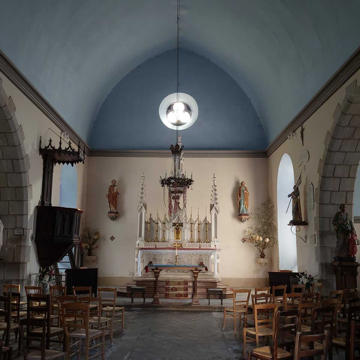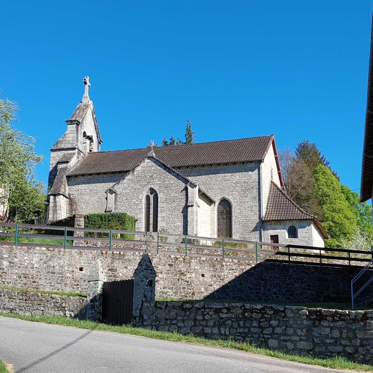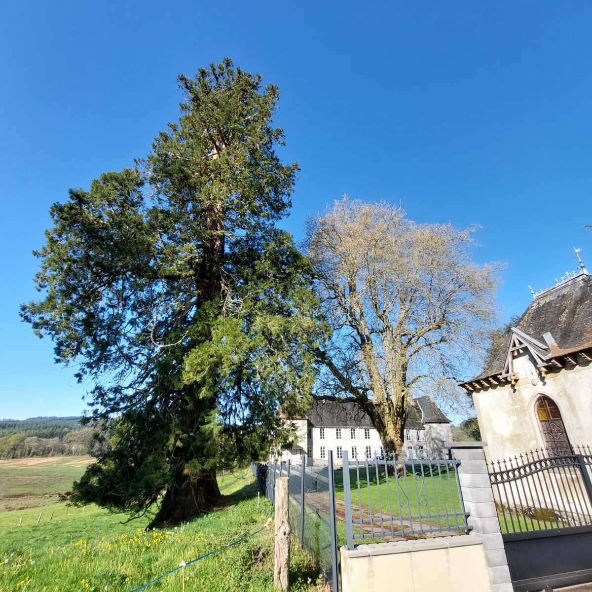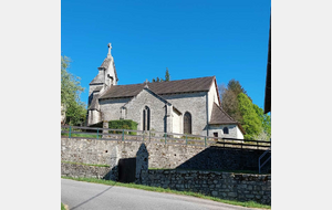 Le chemin bien ensoleillé à travers les prairies nous a conduit jusqu'au château de Baconaille avec ses arbres magnifiques. Après une chouette balade et quelques côtes nous avons terminé par la visite de la petite église du village.